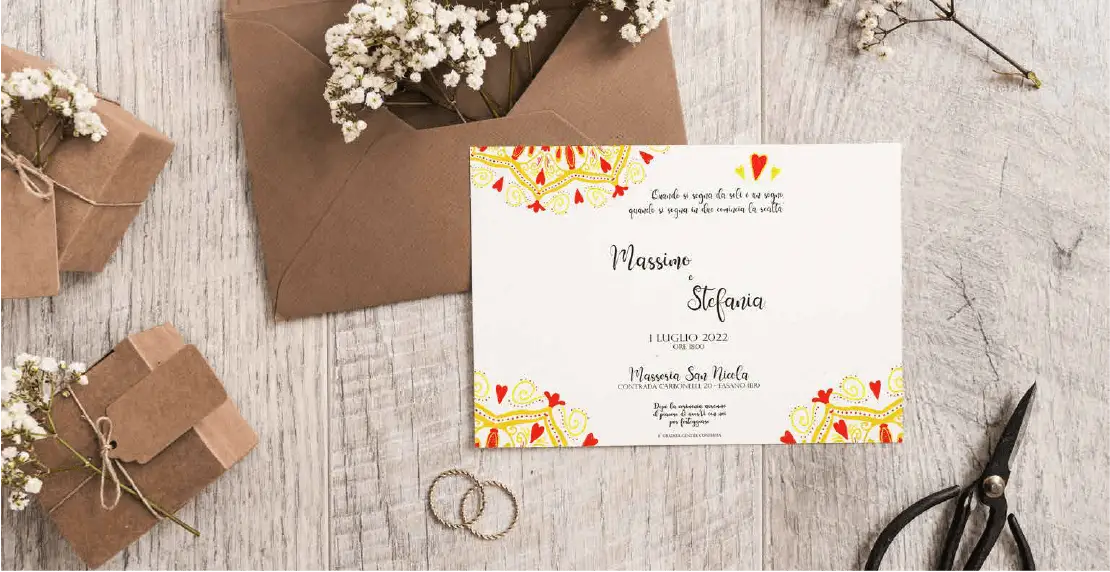 Dai vita al tuo giorno speciale con la nostra sezione Matrimonio, dove l'eleganza si fonde con la praticità. Scopri la magia degli inviti personalizzati, dei segnaposto incantevoli e coordinati perfetti per un matrimonio da sogno. Ogni dettaglio è pensato per raccontare la vostra storia unica.