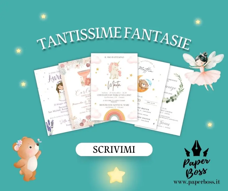 Invito pronto per essere inviato via WhatsApp, email o stampato su carta