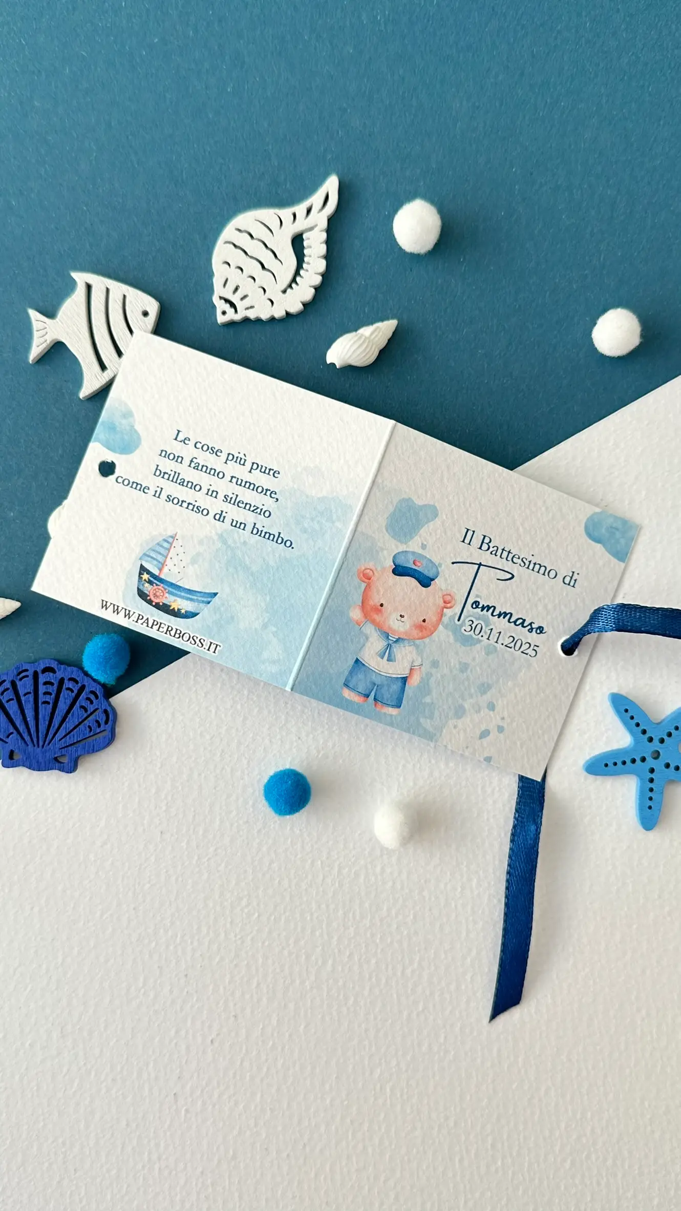Questo porta cioccolatino tema marinaro è un’idea pratica e curata per arricchire la bomboniera del battesimo o per creare un dettaglio coordinato al tema della festa.