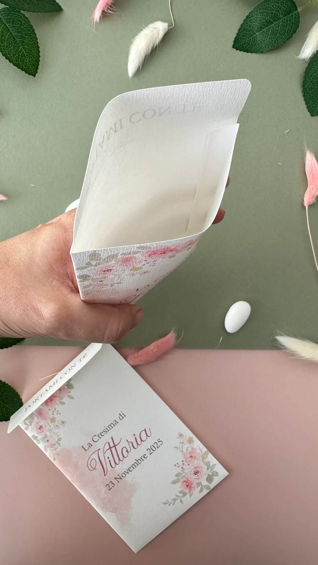 Realizzato in carta bianca di alta qualità, è impreziosito da dettagli floreali pastello che lo rendono elegante e adatto a cerimonie delicate e raffinate. CONFETTI NON INCLUSI