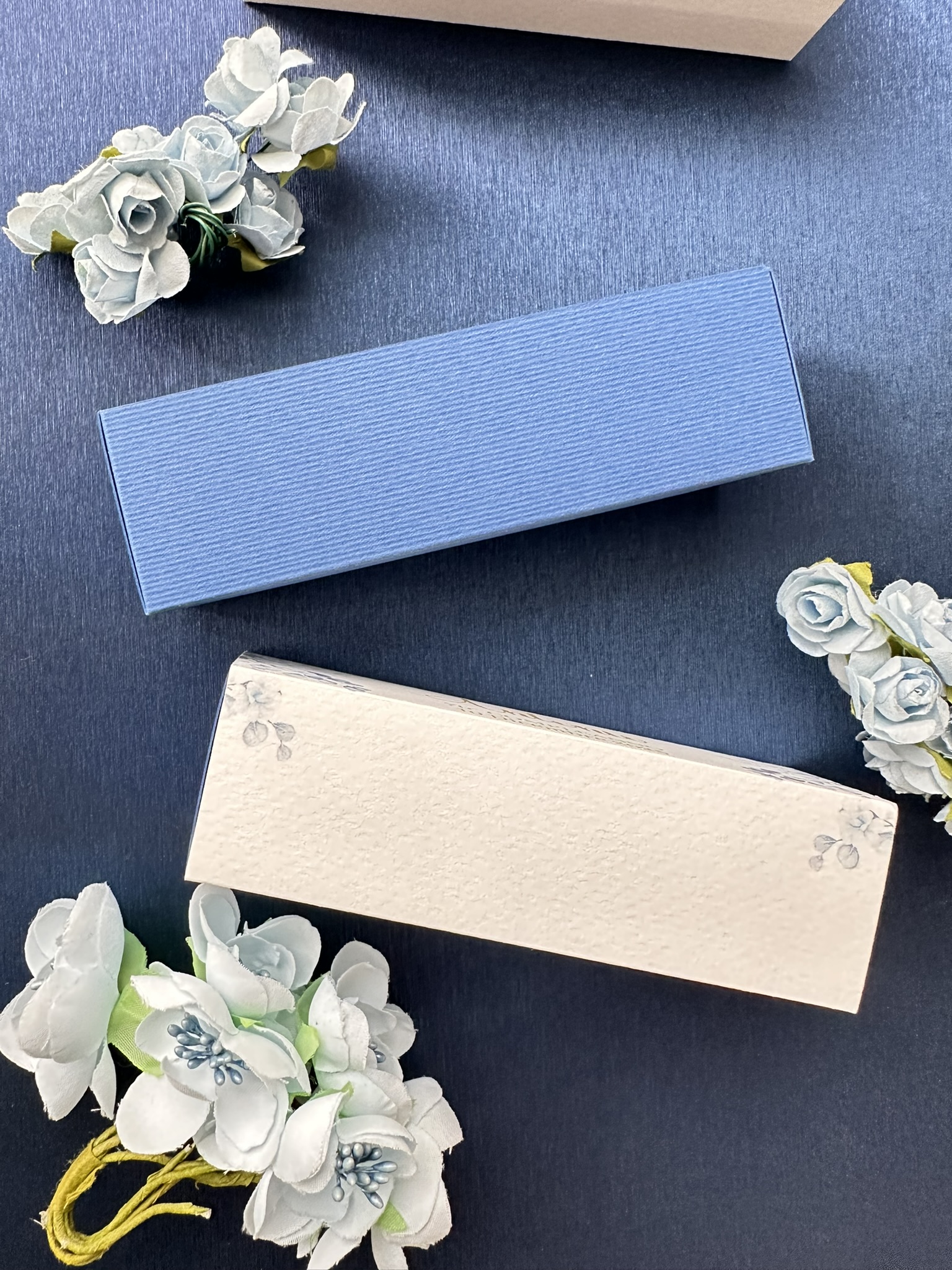 Per un coordinato perfetto a tema floreale blu, abbina questa scatolina con: