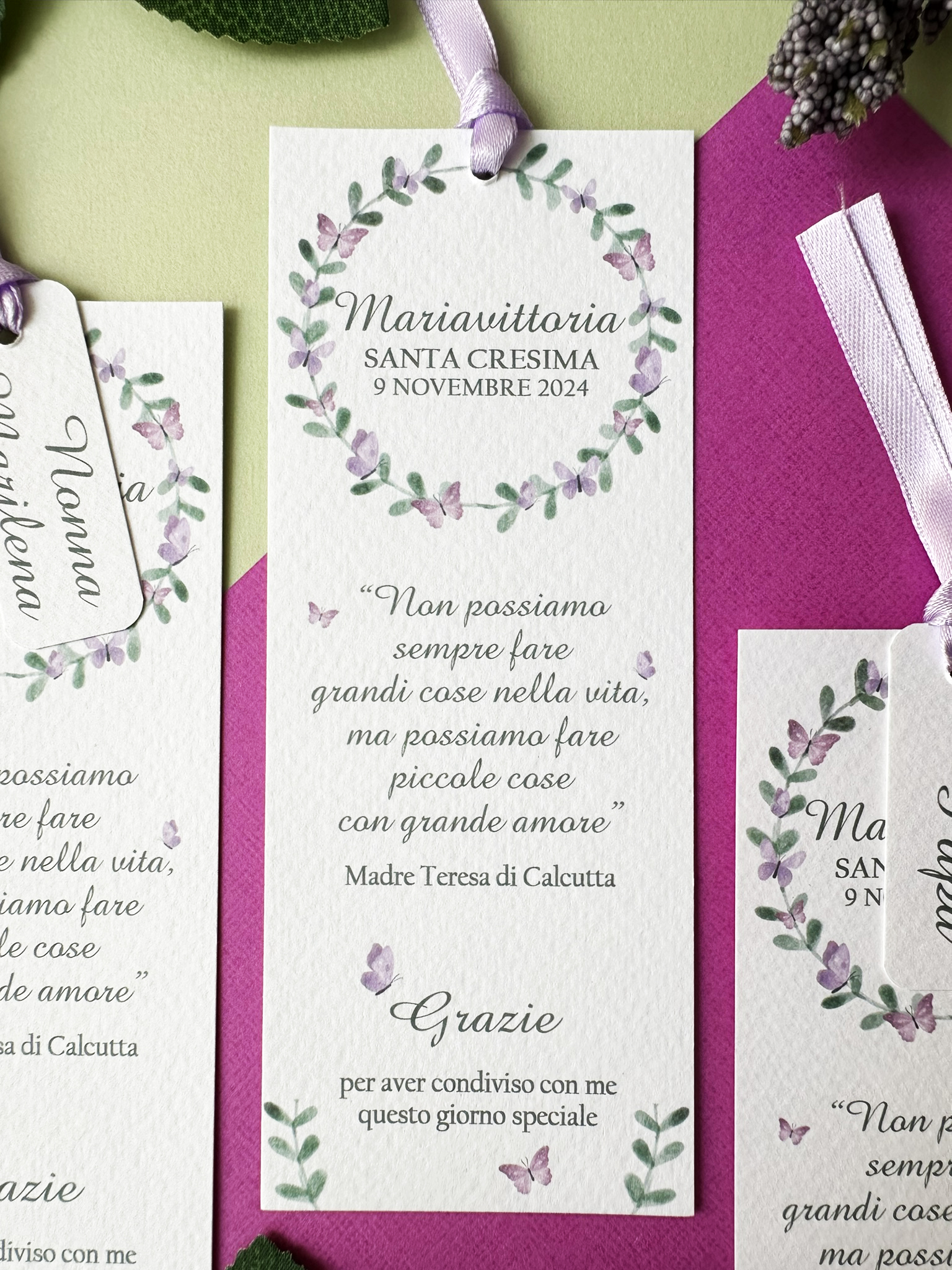 Tag coordinato: https://paperboss.it/prodotto/tag-comunione-personalizzati-con-farfalle-lilla/