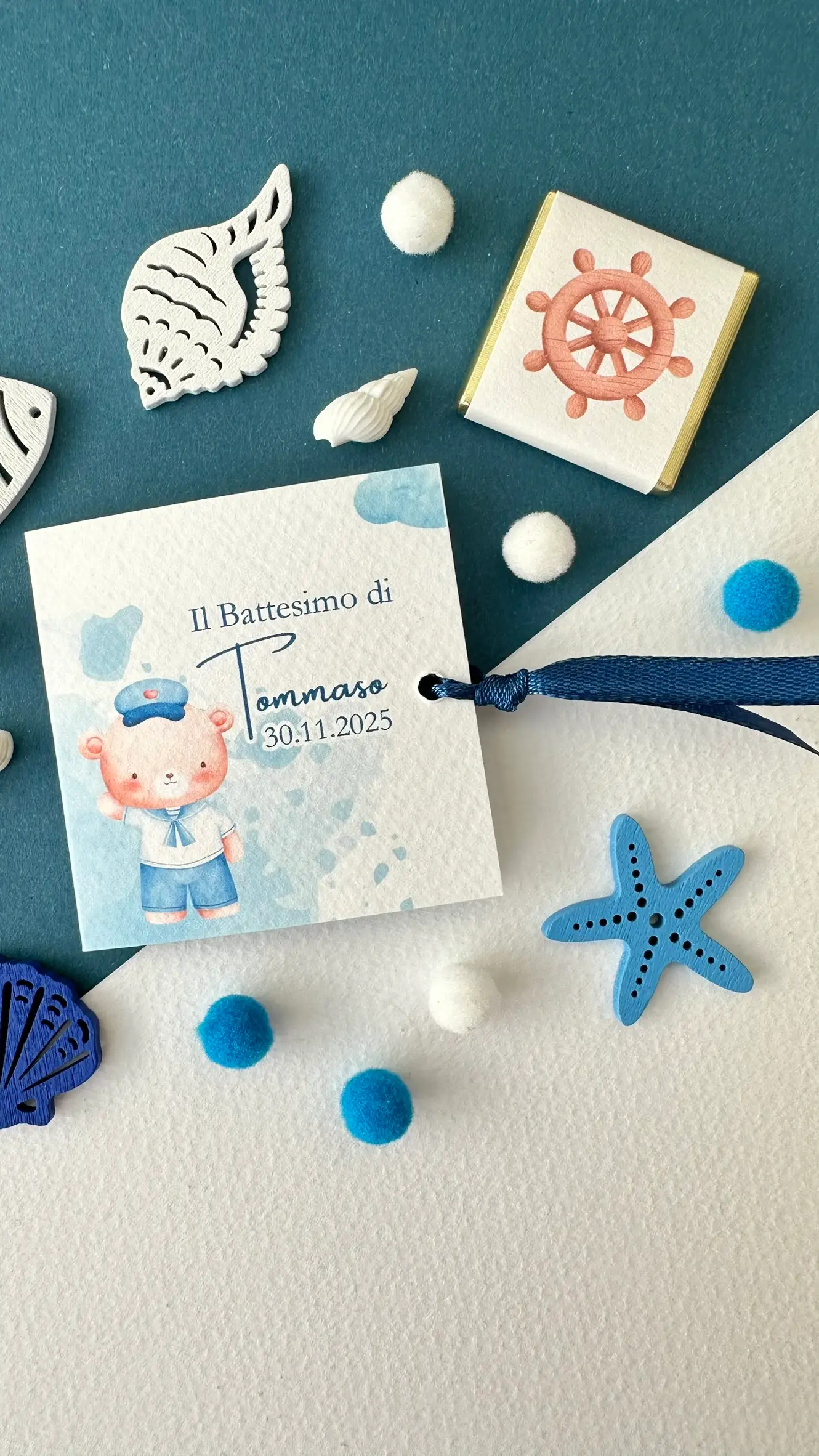 Scatola porta confetti cubo, con onde del mare e barchetta