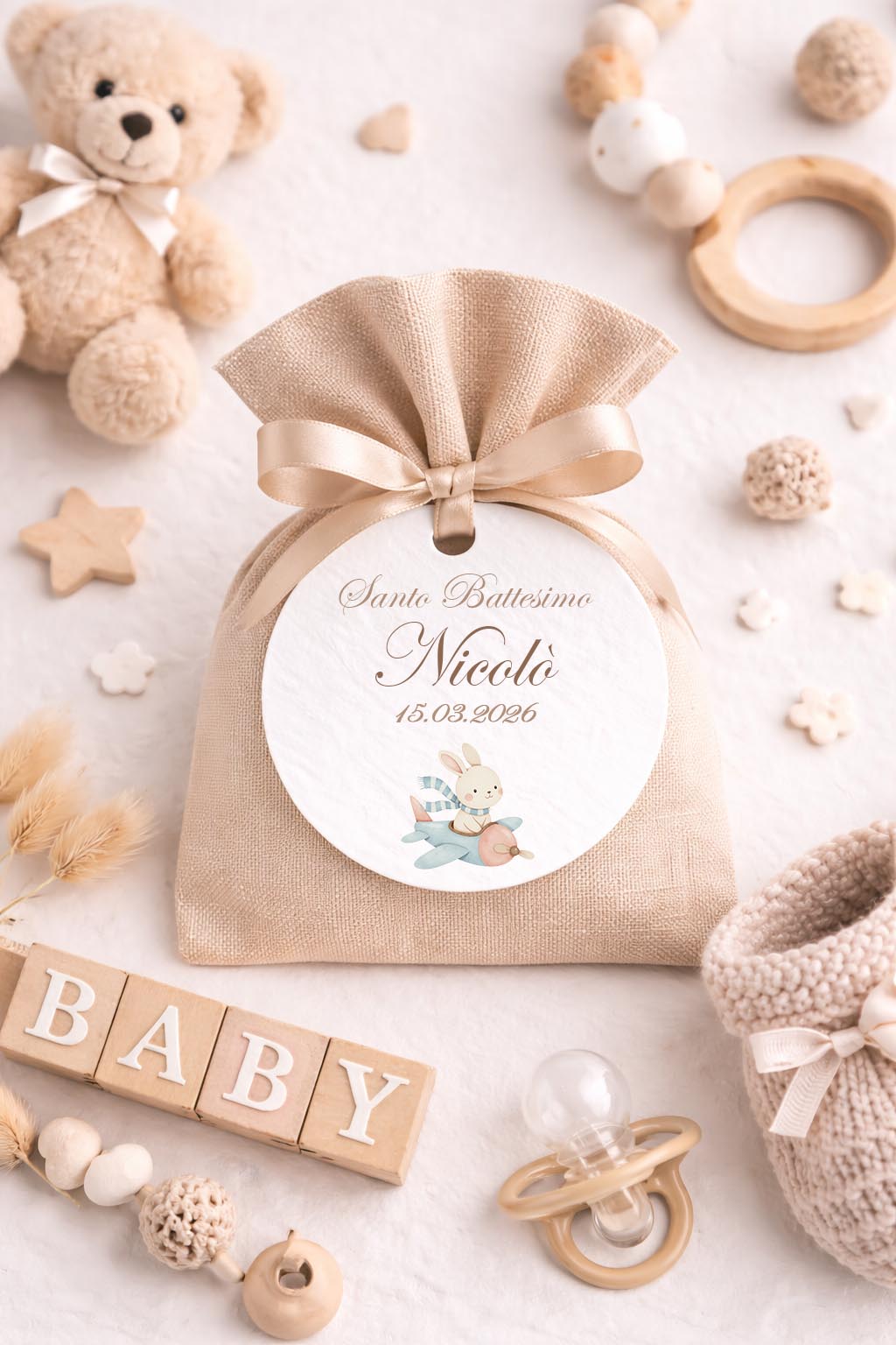 Tag bomboniera battesimo con coniglietto