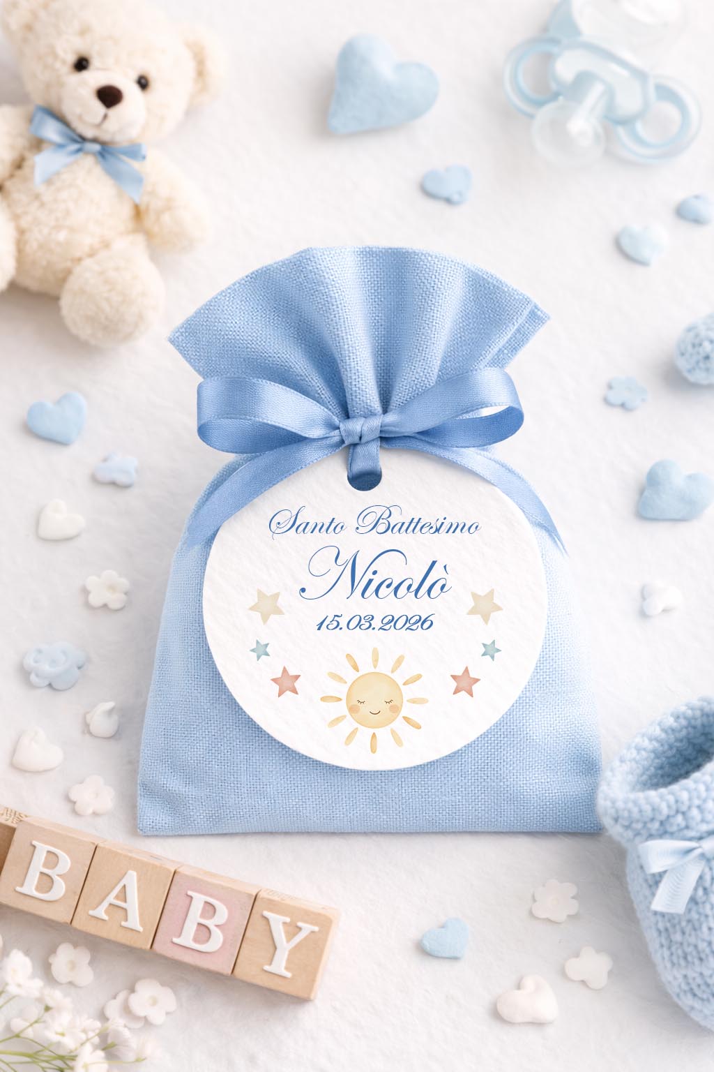 Tag personalizzati battesimo per sacchetti porta confetti